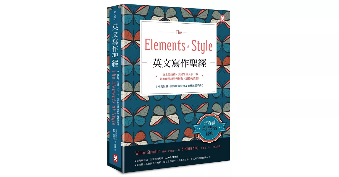 博客來-英文寫作聖經《The Elements of Style》:常春藤英語學習經典《風格的要素》(附原版練習題)【隨書贈.實戰練習手冊】(博客來獨家精裝版.中英對照)訂購網址: https://www.books.com.tw/exep/assp.php/87926/products/0010828825?utm_source=87926&utm_medium=ap-books&utm_content=recommend&utm_campaign=ap-201905